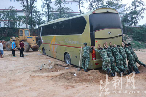 ????7月11日,河北邊防總隊(duì)秦皇島邊防支隊(duì)黃金海岸邊防派出所聞警立動(dòng),經(jīng)過(guò)四個(gè)小時(shí)的努力,及時(shí)救助一輛陷進(jìn)沙坑的旅游大巴,滯留車上的60余名旅客踏上了回家路。