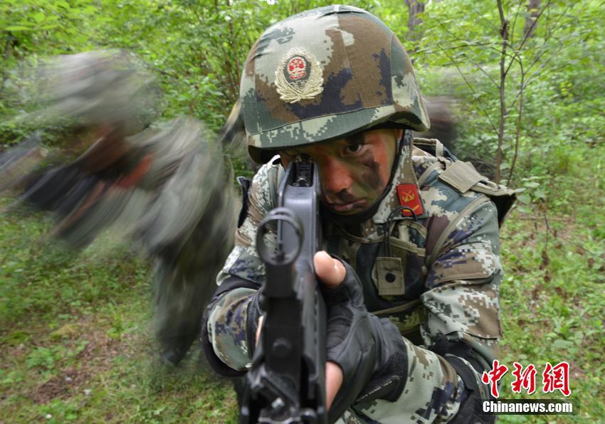 ????近日,吉林邊防總隊機動支隊三大隊的官兵們面圖油彩,手握鋼槍,在近30攝氏度的高溫下,開展野外實戰(zhàn)訓練。訓練設置了突遇敵情隱蔽戰(zhàn)斗、快速行進支援前線等多種情況,穿插安排搜索、追擊、捕殲等多個軍事科目,設立武裝奔襲、圓木越野、擒敵配套等競賽項目,以磨練官兵抗壓能力、堅強意志和拼搏精神。劉豐 攝?