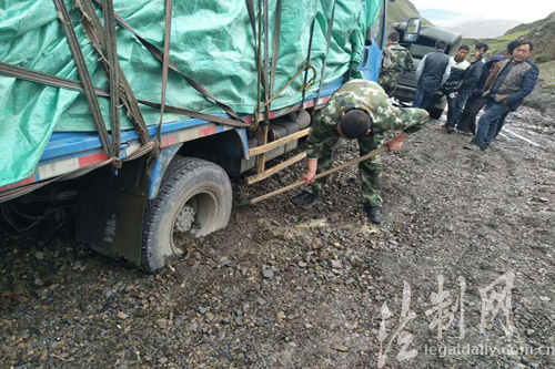????連日來,受強降雨天氣影響,通往西藏山南市錯那縣卡達鄉(xiāng)道路因山體塌方和泥石流損毀嚴重,7月23日中午12時,西藏邊防總隊山南邊防支隊卡達邊防派出所接轄區(qū)居民電話報警稱:商店運貨貨車在返回卡達鄉(xiāng)途中陷入泥潭,請求派出所救援。接到消息后,該所迅速組織官兵趕往現(xiàn)場,并持續(xù)關(guān)注道路情況和受困狀況。到達現(xiàn)場后,邊防官兵立即展開救援,用十字鎬挖、用手刨、用人推,經(jīng)過2個小時的不懈努力,最終成功把陷入泥坑的貨車拉出。救援結(jié)束后,邊防官兵就近取材把泥坑填平,并設(shè)立警示標(biāo)志,確保后續(xù)車輛順利通過?,F(xiàn)場無人員受傷,車輛完好。