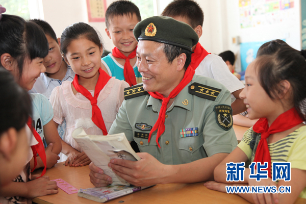 徐洪剛在河南省洛陽(yáng)市一所小學(xué)開(kāi)展國(guó)防教育(2012年6月13日攝)。新華社發(fā)