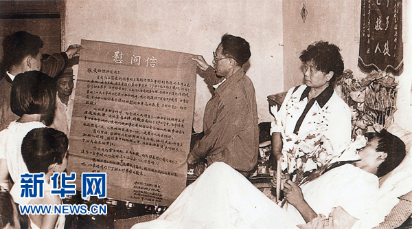 1993年8月,徐洪剛在筠連縣醫(yī)院治療10天,前來(lái)送錦旗、鮮花、食品、慰問(wèn)信的人數(shù)超過(guò)5000人次(資料照片)。新華社發(fā)