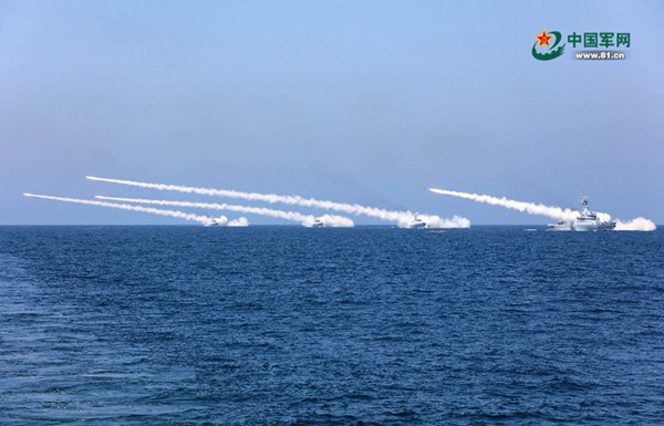8月7日,海軍在黃海、渤海相關??沼蚪M織實兵實彈對抗演習,最大限度檢驗體系作戰(zhàn)能力、戰(zhàn)法訓法、武器裝備效能,共實射各型導彈數十枚。這是水面艦艇齊射反艦導彈。李唐 攝(圖片來源:中國軍網)