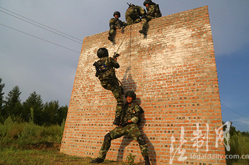 圖為特戰(zhàn)隊員在協(xié)同通過四米墻