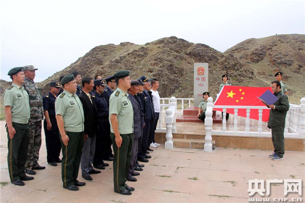 ????近日,烏拉斯臺(tái)邊檢站與口岸聯(lián)檢單位、“民族團(tuán)結(jié)一家親”親戚代表、自治區(qū)駐疆內(nèi)口岸工作組在中蒙163界碑共同舉行“軍旗映國門忠誠鑄軍魂”發(fā)聲亮劍活動(dòng),全面貫徹落實(shí)新疆維護(hù)社會(huì)平穩(wěn)和長治久安總目標(biāo),打牢維護(hù)民族團(tuán)結(jié)思想基礎(chǔ),進(jìn)一步增強(qiáng)廣大官兵的愛國主義情懷,展示執(zhí)勤官兵敢于發(fā)聲、勇于亮劍的堅(jiān)定黨性及堅(jiān)強(qiáng)擔(dān)當(dāng),表明堅(jiān)決聽黨指揮、堅(jiān)決維護(hù)社會(huì)大局安定的理想信念。官兵們一致表示,將始終以更加飽滿的工作熱情投入到邊檢查緝工作中,認(rèn)真履職,敢于擔(dān)當(dāng),筑牢邊境防控的銅墻鐵壁。