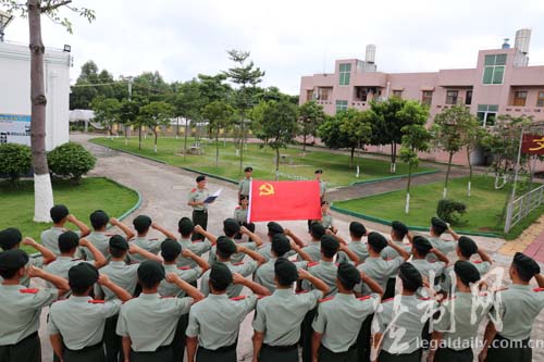 ????8月28日上午,廣西邊防總隊北海邊防支隊機(jī)動大隊42名臨退老兵面對黨旗再一次重溫入伍誓詞,感悟軍人的忠誠與責(zé)任、邊防戰(zhàn)士的自豪與驕傲。