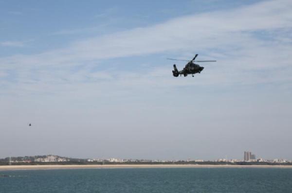 ????武裝直升機(jī)飛赴指定海域(4月18日攝)。