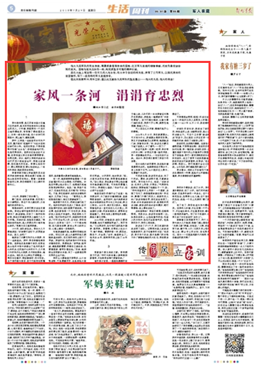 眼瞅著又快到建軍節(jié)了,昨個(gè)兒,我叫來(lái)大兒子敬朋,指著門楣上懸掛的“光榮之家”牌匾,對(duì)他說(shuō):“兒啊,把匾取下來(lái),擦干凈,8月1日那天早上咱再掛上去,要讓早上的太陽(yáng),首先照亮它。因?yàn)椤褪窃奂掖鄠鳌Ⅴr血凝成的家風(fēng)??!”(楊知雪/口述 謝學(xué)楓/整理)