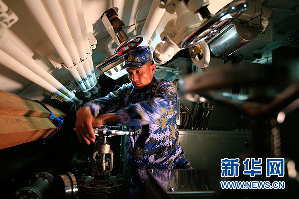 任務中,肖海生在檢查AIP系統(tǒng)(10月30日攝)。新華社發(fā)(練偉 攝)