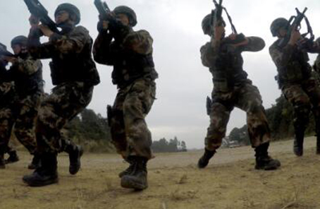 ????武警雪豹突擊隊隊員進行運動射擊訓練(1月12日攝)。新華社記者李剛 攝
