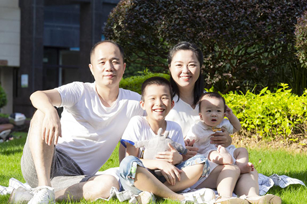 一家四口合照。