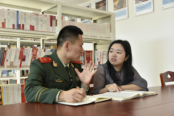 鄭如輔導(dǎo)戰(zhàn)士文化課。