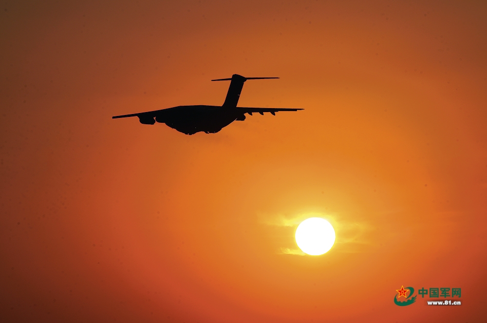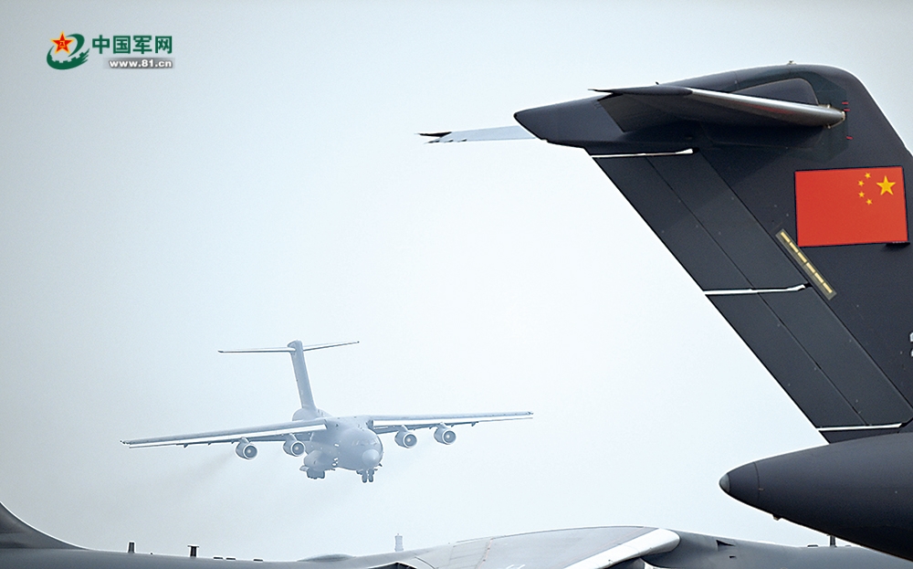 “起飞!”塔台下达指令。伴着震耳欲聋的轰鸣声,一架架运-20在跑道上加速起飞。轰鸣声渐远,飞机组成编队飞赴训练空域。