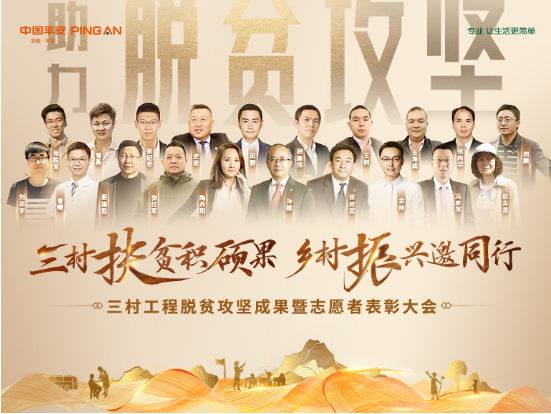 2021年1月6日,中國平安召開脫貧攻堅(jiān)階段三村工程暨志愿者表彰大會(huì),隆重表彰了三年以來在“三村工程”中做出突出貢獻(xiàn)的單位和個(gè)人,同時(shí)表彰在2020年度奮斗在社會(huì)公益最前線的優(yōu)秀志愿者分會(huì)及個(gè)人。