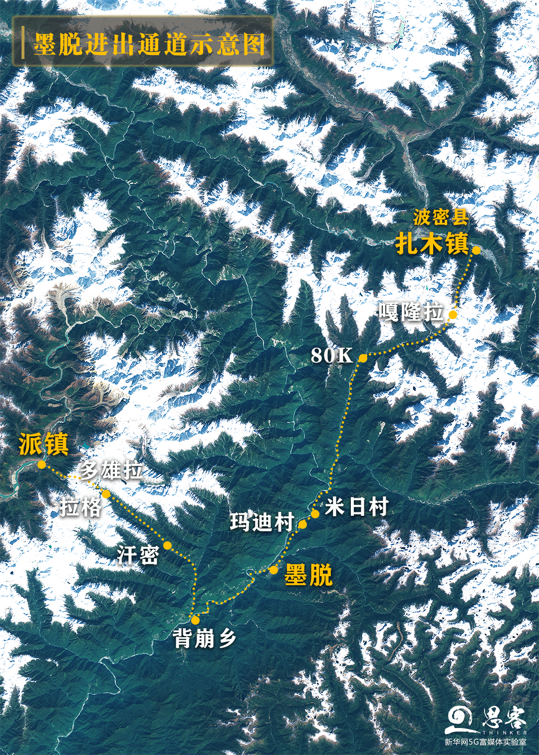▲進出墨脫的兩條通道,修通公路前,沿途需4-5天。衛(wèi)星數(shù)據(jù)來源:SENTINEL-2