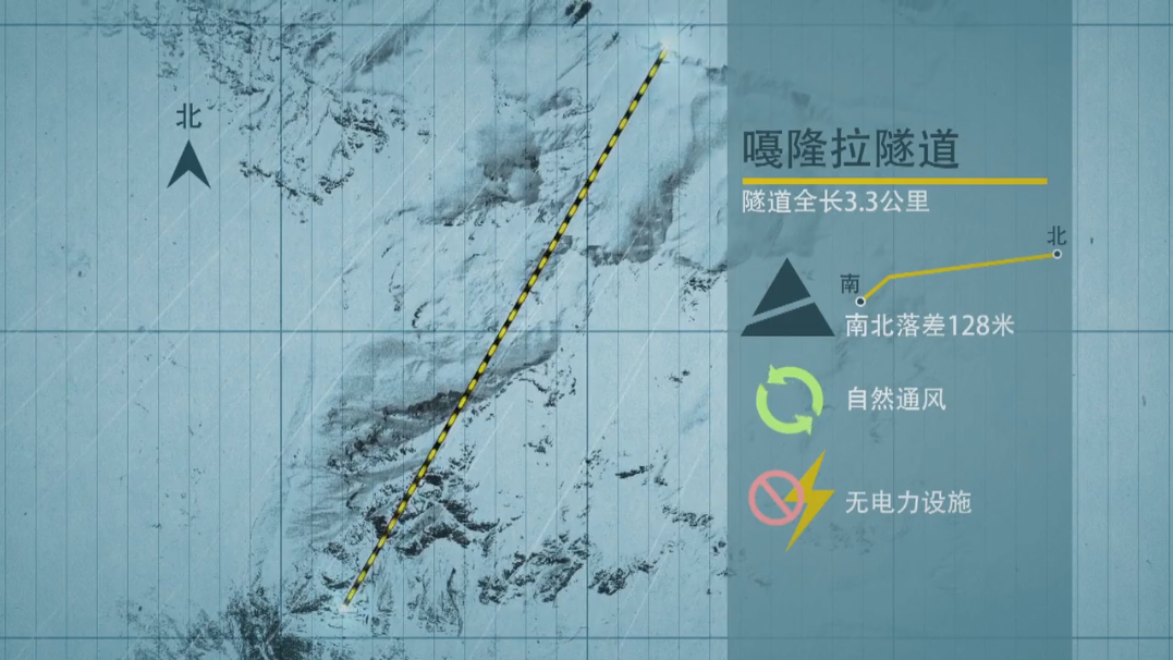 ▲嘎隆拉隧道南北高差達128米,相當(dāng)于40層樓的高度。