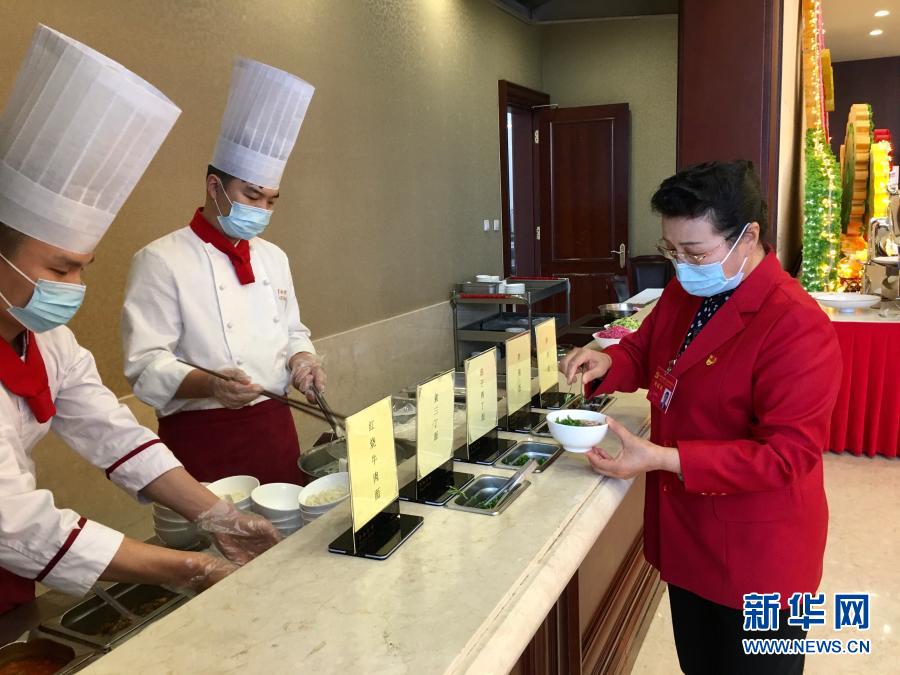2020年10月29日,受邀列席黨的十九屆五中全會(huì)的基層社區(qū)工作者吳亞琴在京西賓館餐廳取了一份小碗面。她表示:“盛面的碗也都是小碗,吃多少打多少?!毙氯A社記者 朱基釵 攝