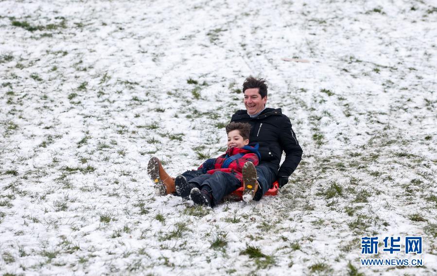 1月24日,人們?cè)谟鴤惗叵硎苎┤?。新華社記者韓巖攝