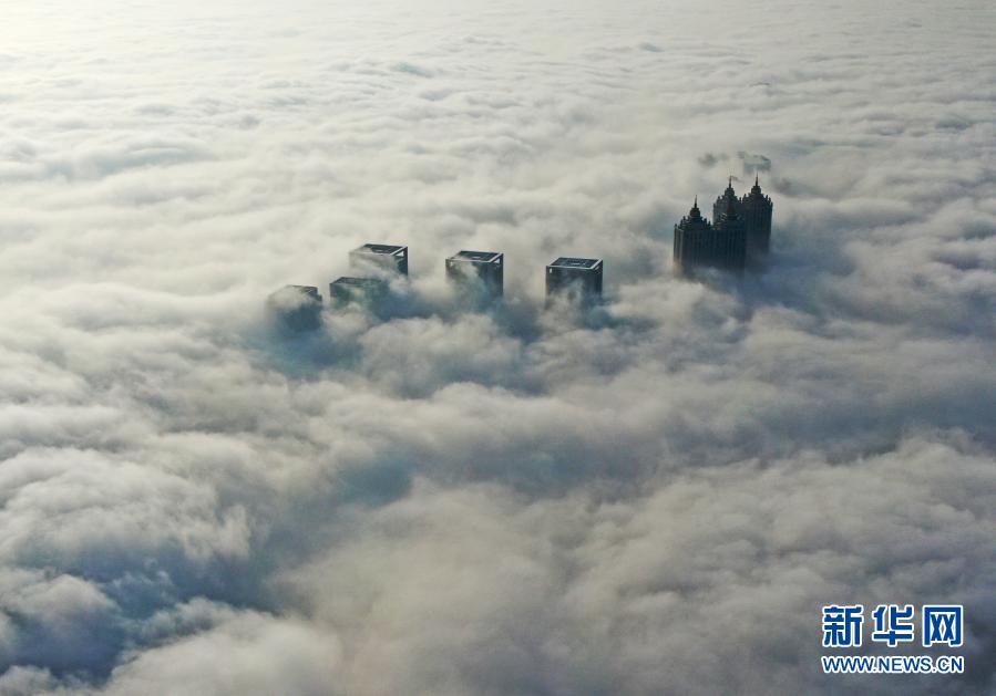 這是1月26日在沈陽(yáng)市渾南區(qū)拍攝的市內(nèi)霧景(無(wú)人機(jī)照片)。當(dāng)日,沈陽(yáng)出現(xiàn)大霧天氣,城市樓宇在濃霧中若隱若現(xiàn)。新華社記者 楊青 攝