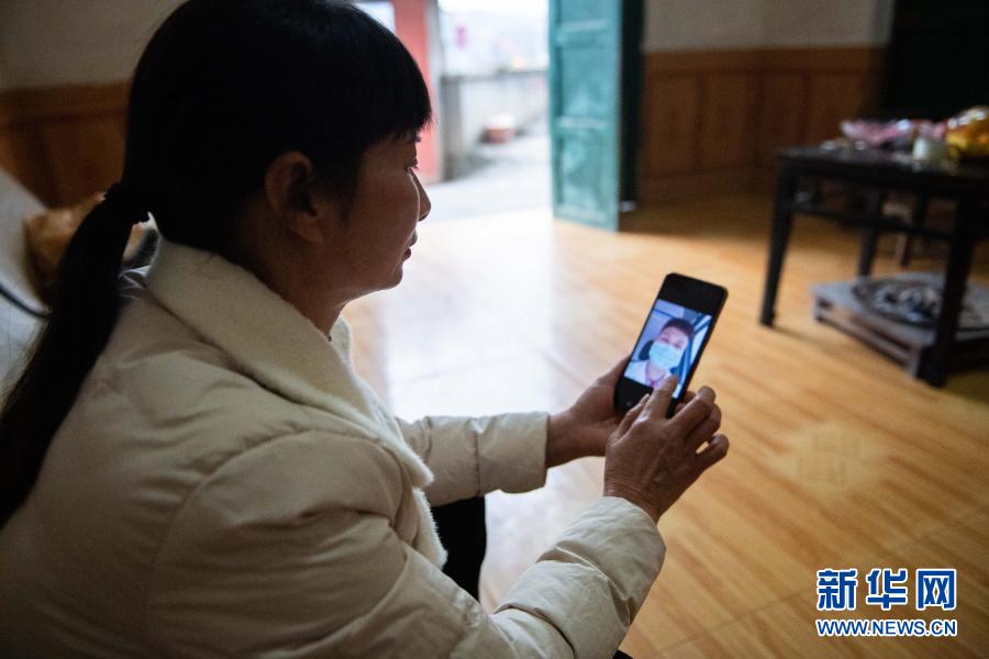 1月29日,在湖南省瀘溪縣浦市鎮(zhèn)麻溪口村,武中翠翻看兒子的照片。