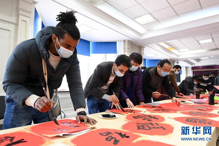 2月4日,外國(guó)留學(xué)生在學(xué)寫(xiě)福字。