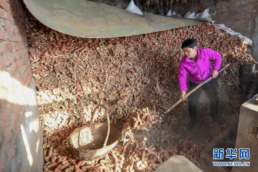 2月9日,在吉林省長春市農(nóng)安縣楊樹林鄉(xiāng)牛尾巴山村,付寶印的母親鐘士輝準(zhǔn)備燒火用的玉米棒。新華社記者 張楠 攝