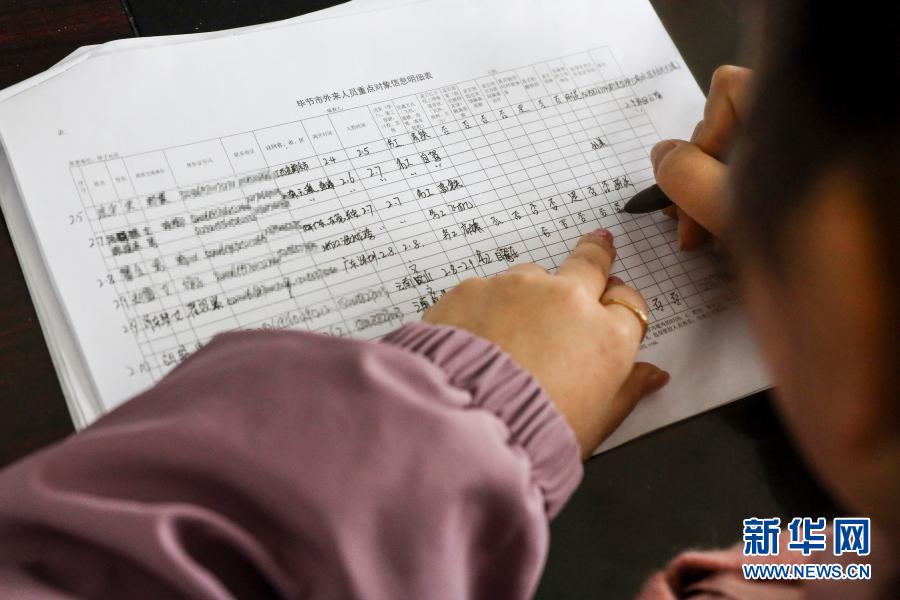 2月13日,吳窮在坪子社區(qū)綜合服務(wù)中心內(nèi)登記返鄉(xiāng)人員信息。新華社記者 歐東衢攝