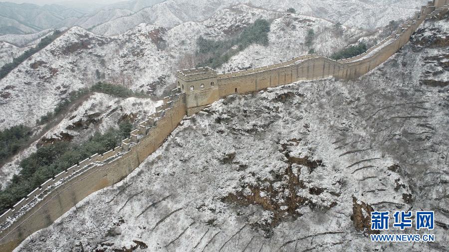 這是2月23日拍攝的金山嶺長城雪景(無人機照片)。受冷空氣影響,河北省承德市灤平縣當日出現(xiàn)降雪天氣。雪后的金山嶺長城銀裝素裹,美如畫卷。新華社發(fā)(王立群 攝)