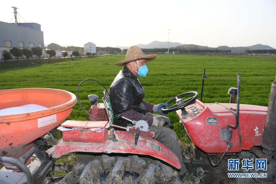 2月23日,湖州錢山下糧油專業(yè)合作社工作人員駕駛農(nóng)機前往田間給小麥施肥。立春過后氣溫回升,浙江省湖州市吳興區(qū)道場鄉(xiāng)全力開展春耕工作。今年該鄉(xiāng)計劃播種農(nóng)作物總面積1.2萬畝,其中水稻5000畝、小麥2000畝。新華社記者 翁忻旸 攝
