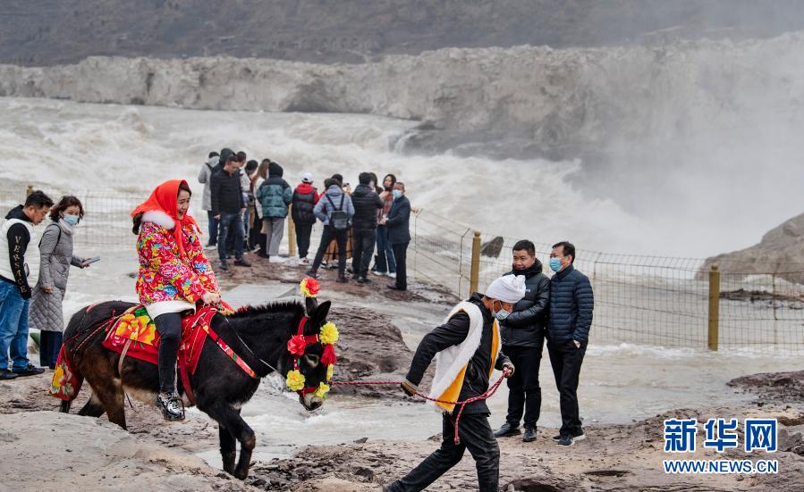 從2月24日起,陜西壺口瀑布景區(qū)恢復(fù)對外開放。隨著氣溫回升,黃河上游冰雪消融,水量增大,壺口瀑布的主瀑布恢復(fù)了往日奔騰咆哮的氣勢,黃河之水奔騰而下,形成壯觀瀑布群。