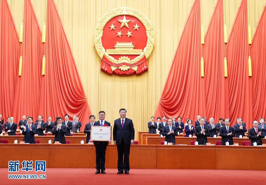 2月25日,全國脫貧攻堅(jiān)總結(jié)表彰大會(huì)在北京人民大會(huì)堂隆重舉行。這是習(xí)近平為全國脫貧攻堅(jiān)楷模榮譽(yù)稱號(hào)獲得者河北省塞罕壩機(jī)械林場頒獎(jiǎng)。新華社記者 燕雁 攝