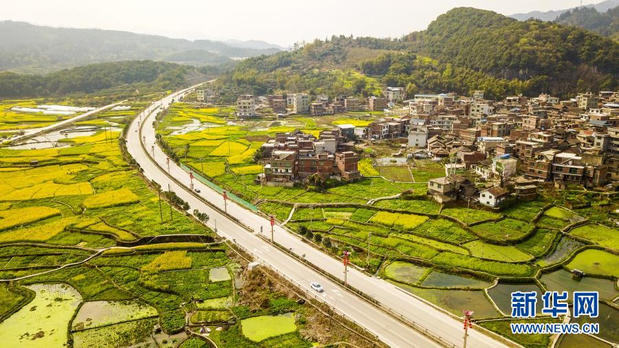 初春時節(jié),位于貴州省黔東南苗族侗族自治州從江縣貫洞鎮(zhèn)附近的油菜花陸續(xù)盛開,宛若大地披金。古樸寧靜的村莊、四通八達(dá)的鄉(xiāng)村路、色彩斑斕的田野,構(gòu)成春日里一幅幅美麗的鄉(xiāng)村畫卷。