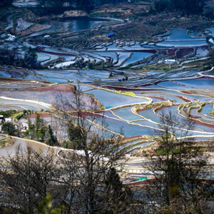 春日里,位于云南省紅河哈尼族彝族自治州元陽(yáng)縣境內(nèi)的哈尼梯田在不同光照條件下呈現(xiàn)出豐富色彩,與周邊村寨、山系等和諧相融,猶如一幅幅色彩斑斕的油畫(huà),美不勝收。