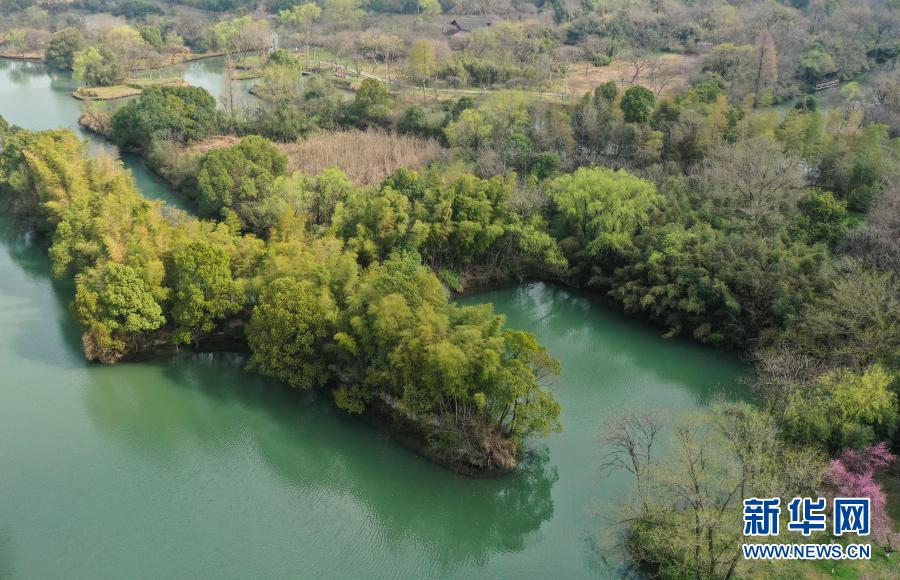西溪濕地內(nèi)植被吐出新綠(3月2日攝,無人機(jī)照片)。