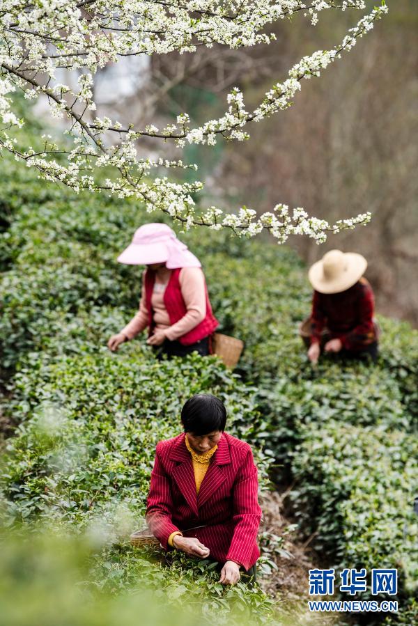 3月4日,安康市漢濱區(qū)流水鎮(zhèn)群眾在采摘新茶。新華社記者 陶明 攝