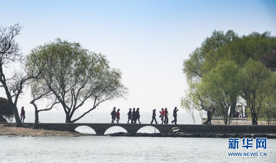 3月13日,游人在江蘇省無(wú)錫市太湖黿頭渚景區(qū)游覽。