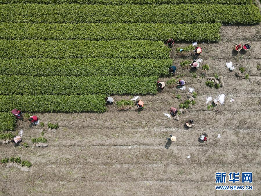 3月13日,在遵義市余慶縣白泥鎮(zhèn)滿溪村,村民在田間勞作(無(wú)人機(jī)照片)。新華社發(fā)(穆明飛 攝)