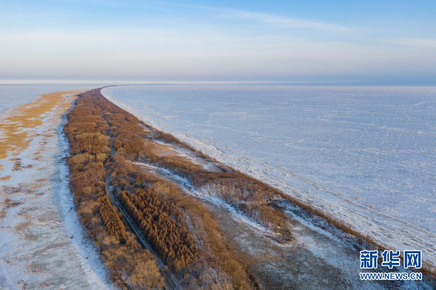 3月13日拍攝的封凍的興凱湖(無人機(jī)照片)。