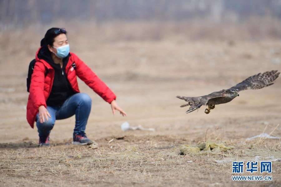 3月14日,沈陽猛禽救助中心志愿者將救助的蒼鷹進(jìn)行放飛。