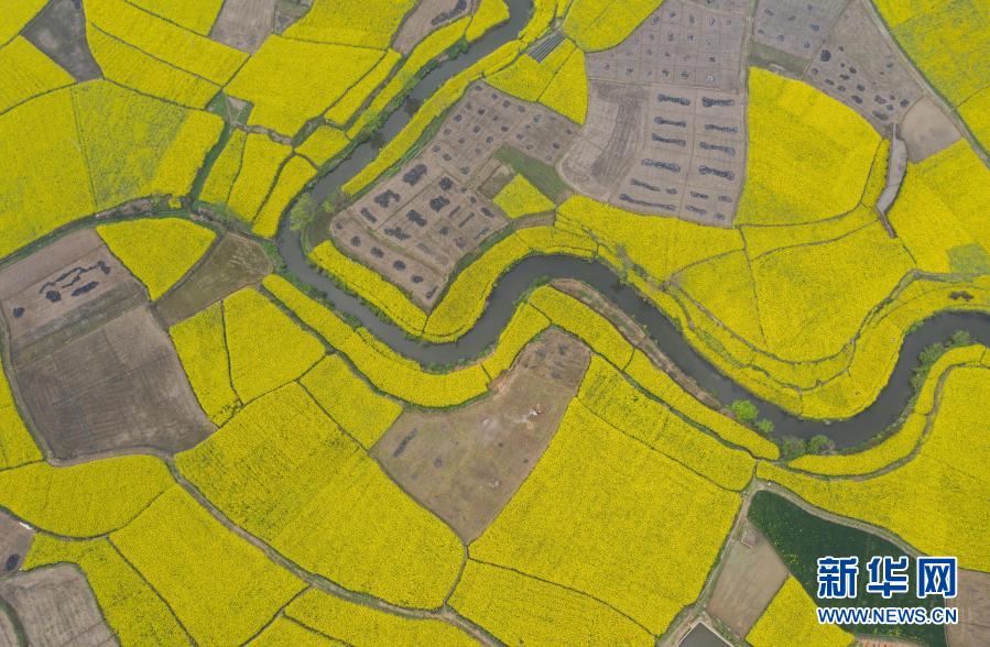 安州區(qū)樂興鎮(zhèn)蓮花村的油菜花海(3月14日攝,無人機照片)。新華社記者 江宏景 攝