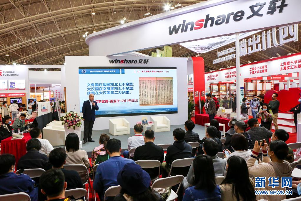 3月31日,參展人員在四川出版展區(qū)參加《海上傳奇》新書分享會(huì)。