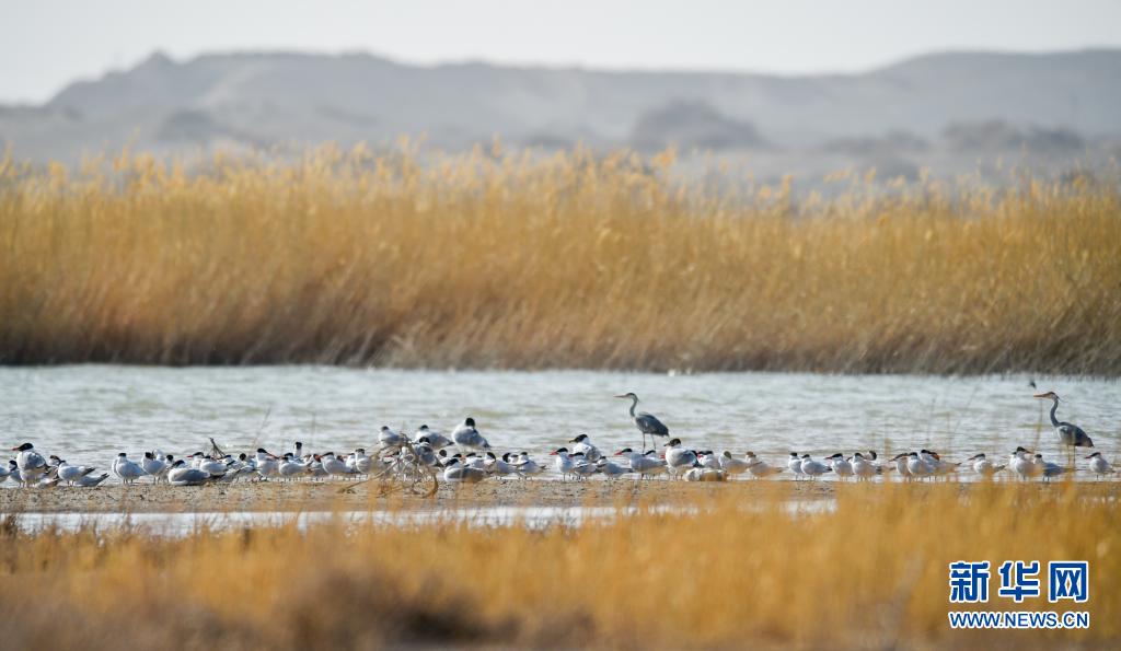 4月13日在居延海濕地拍攝的候鳥。