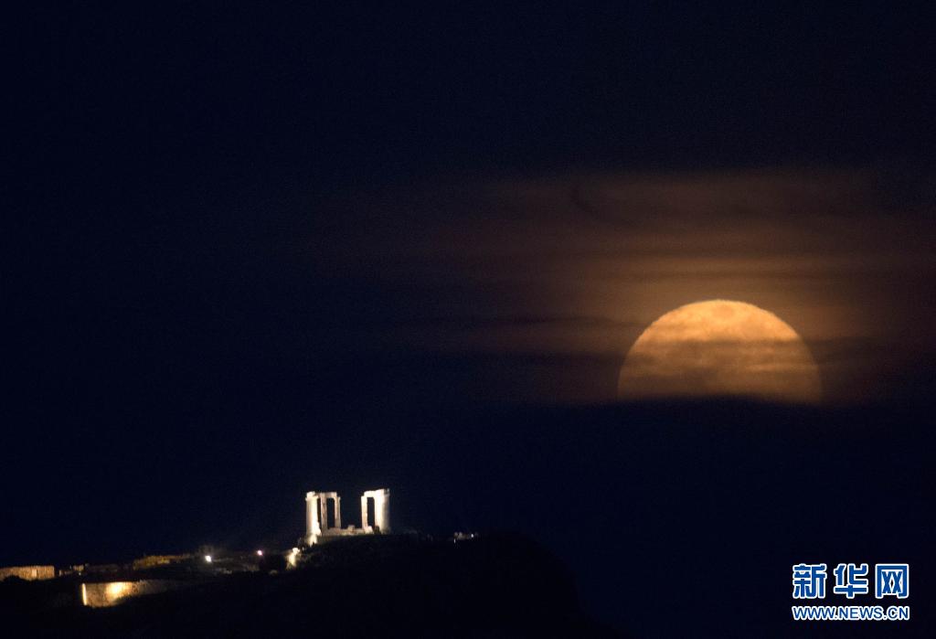 希臘海神廟:“超級(jí)月亮”現(xiàn)身夜空