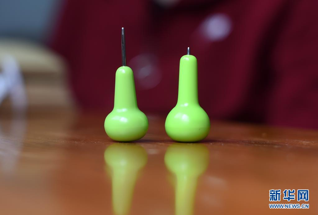 盲文筆筆頭是合金材質(zhì)、不易磨損,而葉景芬的一支盲文筆(右)因長期使用筆頭已磨損殆盡(攝于4月28日)。新華社記者 韓傳號 攝