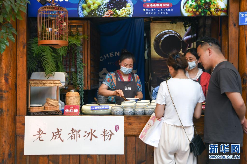 5月1日,游客在四川省成都市寬窄巷子景區(qū)購買飲品。