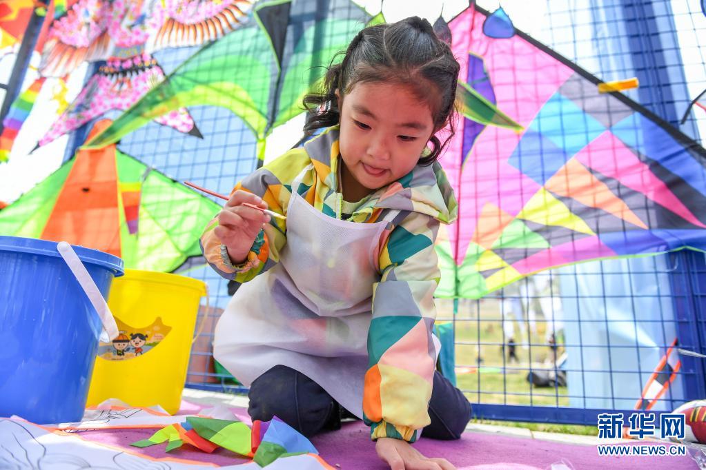 5月1日,在吉林市萬科松花湖度假區(qū),小朋友創(chuàng)作手繪風(fēng)箏。