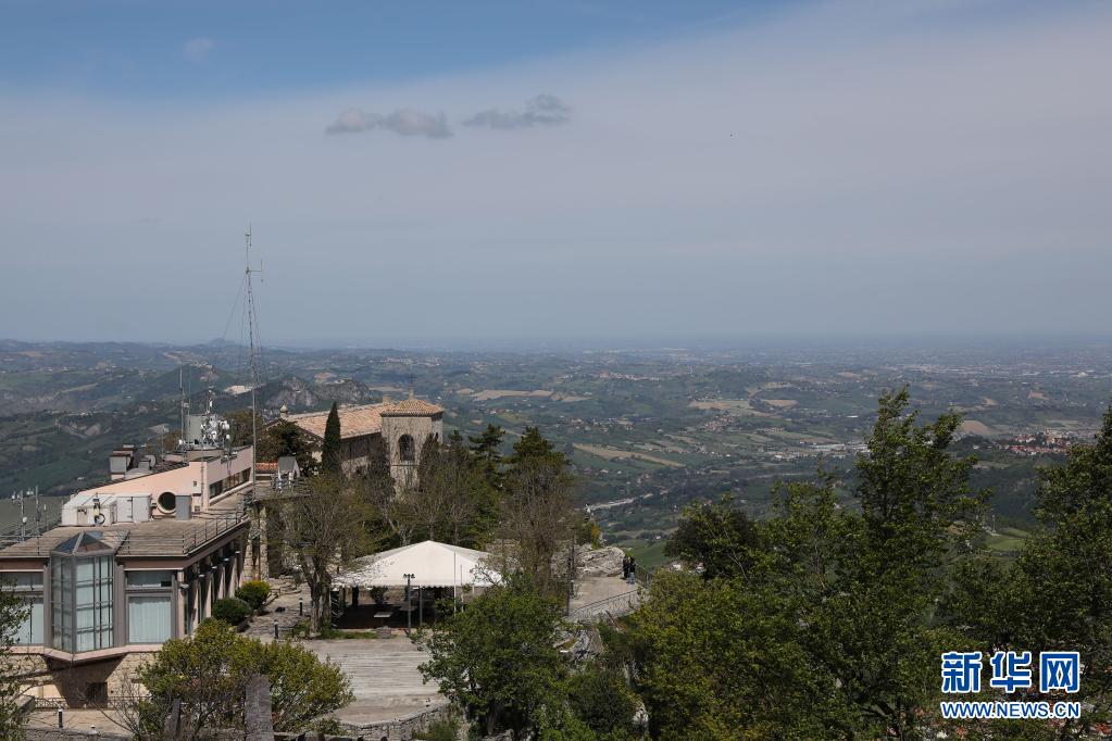 5月6日,人們在圣馬力諾城中的一處平臺上欣賞風(fēng)景。