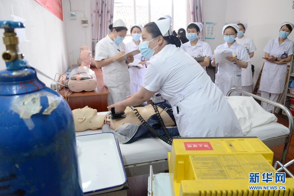 5月11日,江西省撫州市南豐縣人民醫(yī)院的護士在進行除顫技能競賽。