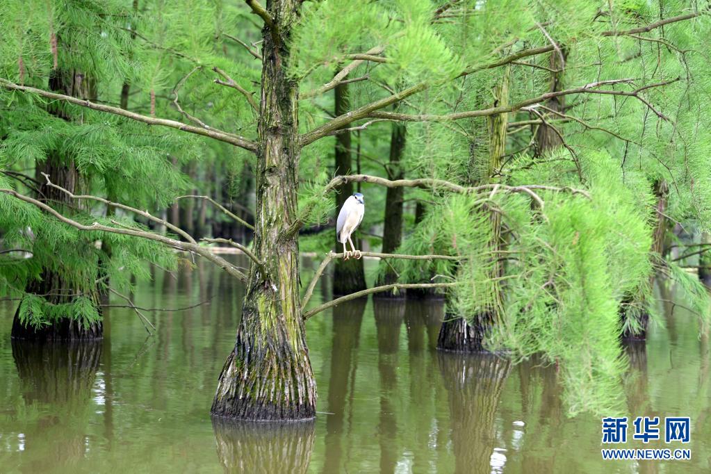 位于安徽省滁州市來安縣雷官鎮(zhèn)的池杉湖國家濕地公園經(jīng)過多年的生態(tài)修復(fù),形成分布數(shù)萬株池杉樹、具有獨特觀賞價值的“水上森林”濕地景觀,成為眾多鳥類生活、棲息的“天堂”。