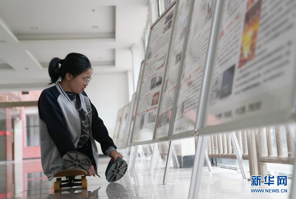 16歲的蔣張子怡是江西上饒中學(xué)高中一年級的學(xué)生。2010年一場車禍奪去了她的雙腿,如今的她只能依靠滑板代步,用雙手前行,為此,大伙都稱她“滑板姑娘”。