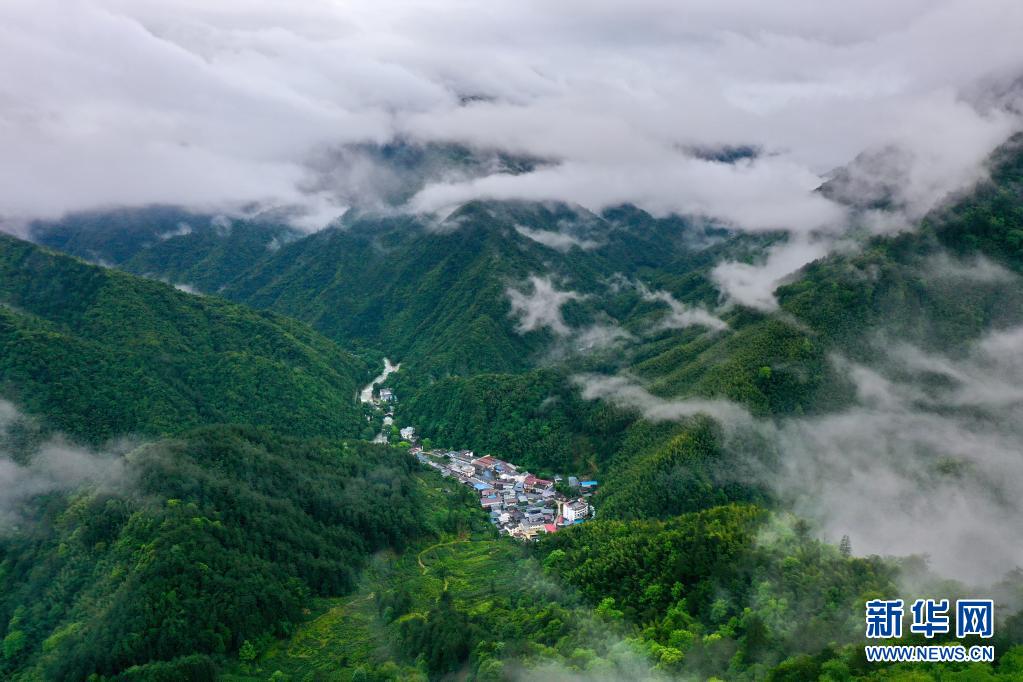 5月17日,武夷山國家公園桐木村附近群山云霧繚繞(無人機照片)。